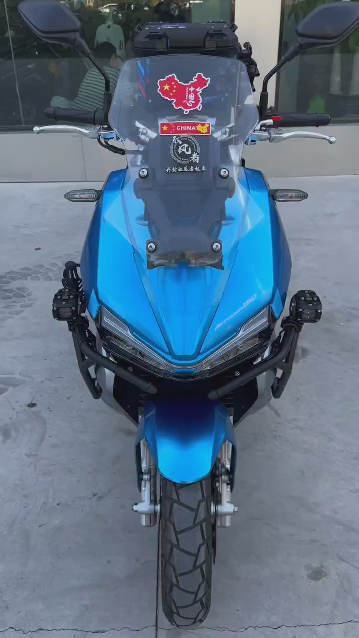 Braystone Extreme Day 150 Off-Road ADV pedals,Install future eye spotlights, carbon steel guards for the whole car, aluminum alloy tailgate, mobile phone holder, water cup holder, front and rear ABS pulse ignition, start-stop, side support stalling, four-matrix headlights, front and rear all-terrain tires, manually adjust the windshield~ The configuration is quite wow The new car has landed on more than 10,000 cars